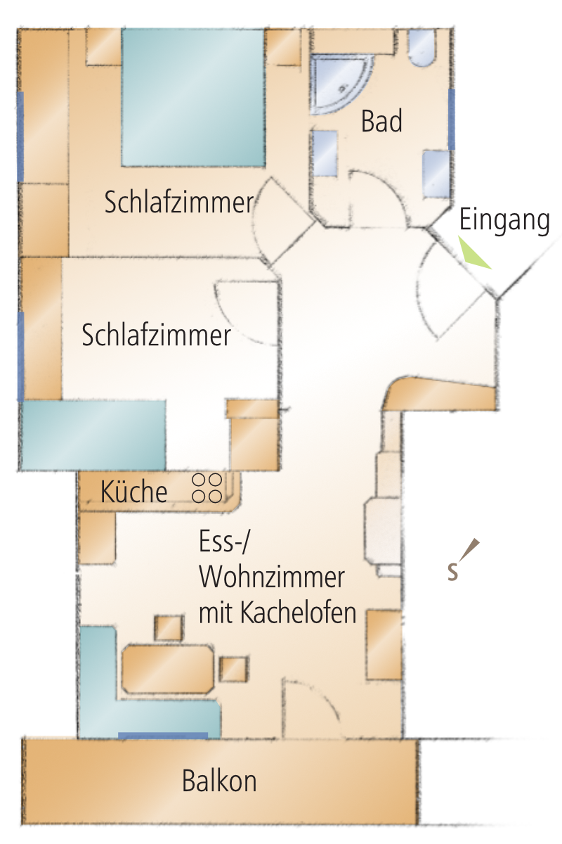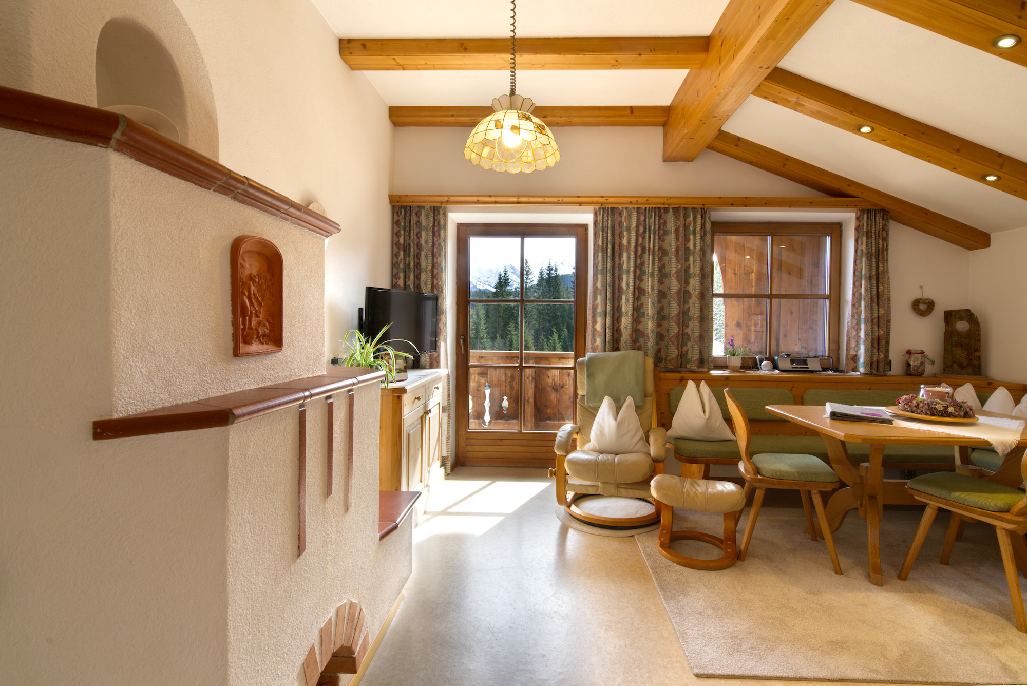 - Wohnküche mit Kachelofen für gemütliche Abende