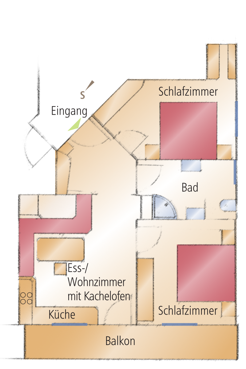 - Wohnküche mit Kachelofen für gemütliche Abende
