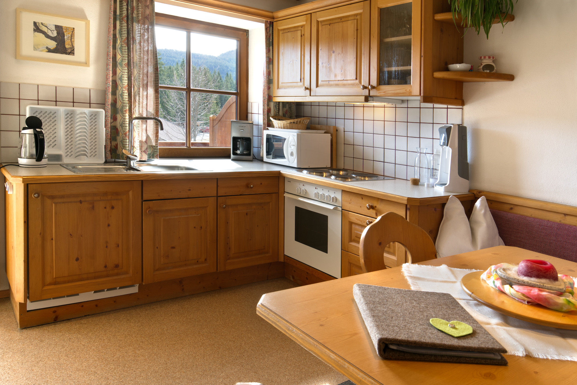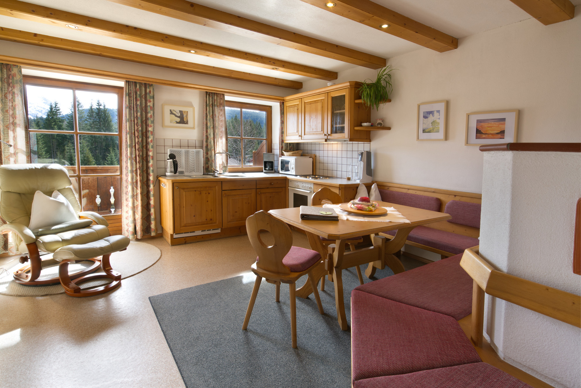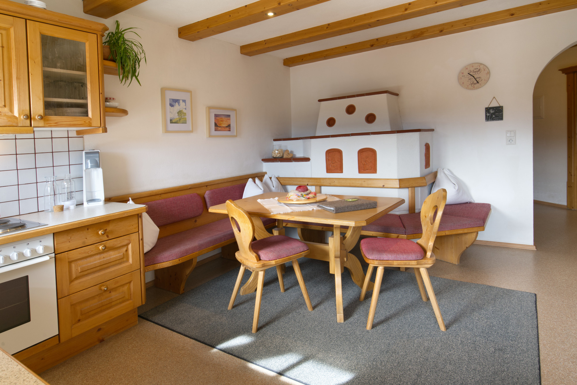 - Wohnküche mit Kachelofen für gemütliche Abende