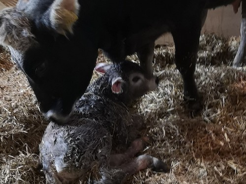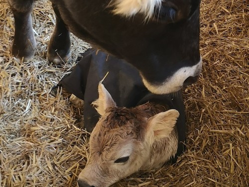 ELLI und ElVIS, die ersten Kälber unserer Mutterkühe sind gut angekommen und wohlauf!