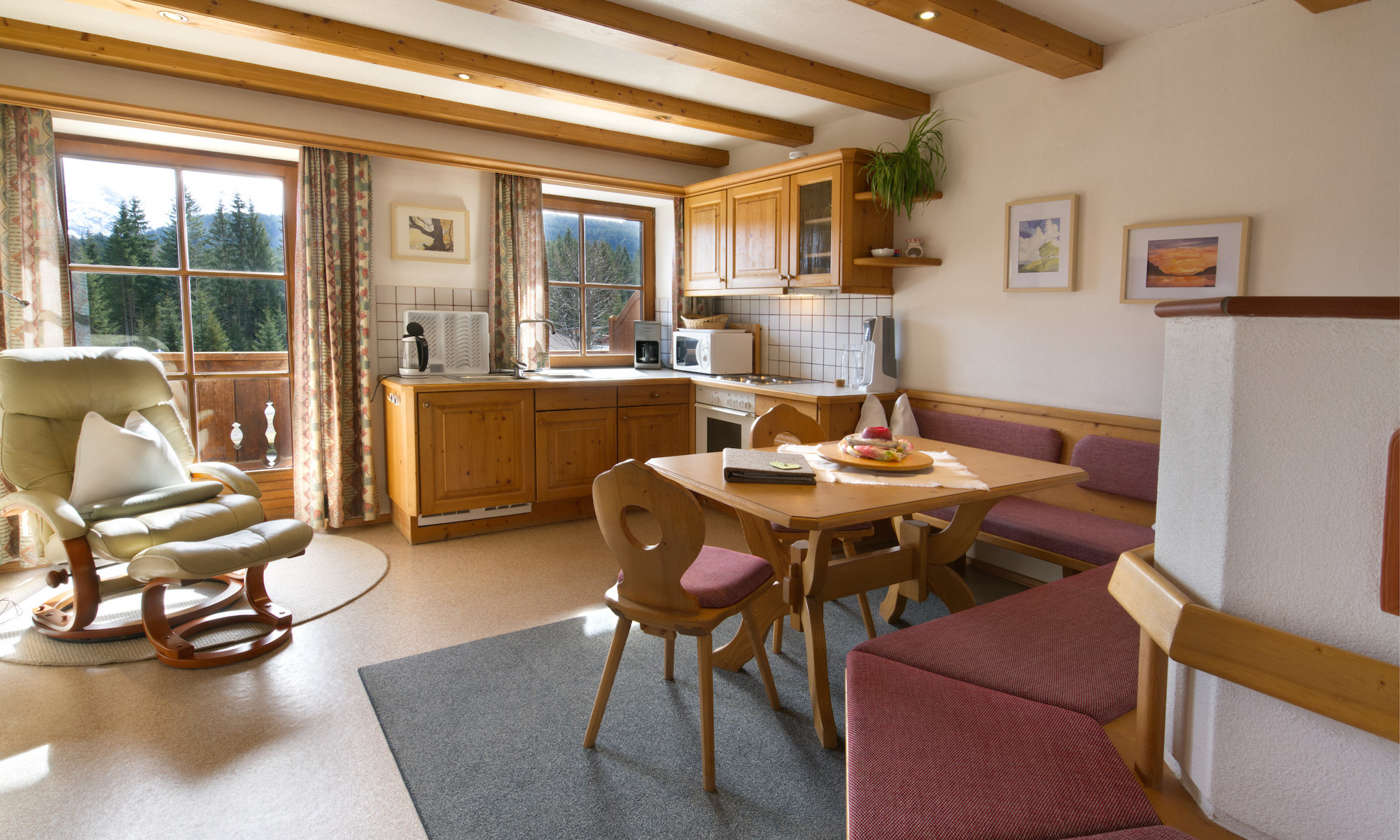 I nostri appartamenti per vacanze sono moderni e molto spaziosi in stile tirolese chiaro, arredati in modo confortevole, con soggiorno e camera da letto separati, doccia, WC, asciugacapelli, balcone, anticamera.